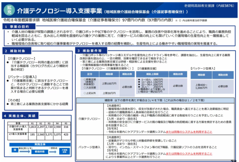 「介護テクノロジー」として認められましたので、国(窓口は各都道府県)の